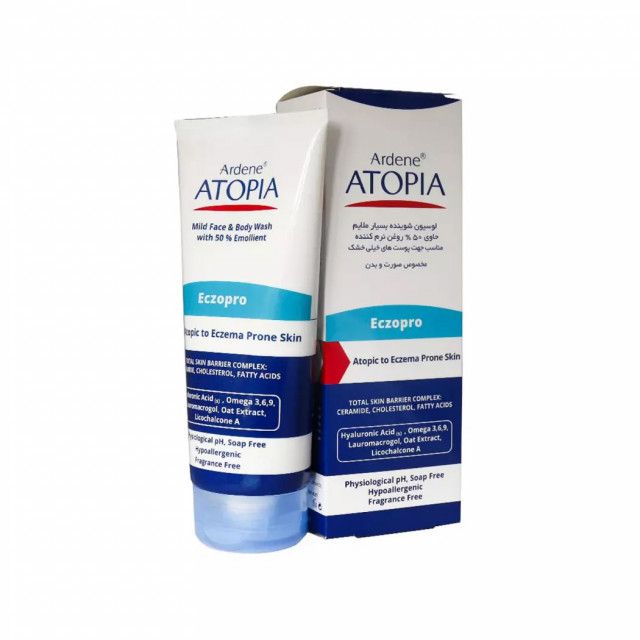 لوسیون شوینده بسیار ملایم آتوپیا مدل Eczopro حاوی 50 درصد روغن نرم کننده بوده و محصولی تخصصی با قدرت شویندگی بسیار ملایم پوست های خیلی خشک و اگزمایی است. این شوینده صورت ایرانی موجب تحریک و خارش بر روی پوست نشده و به راحتی از سطح پوست پاک می شود. لوسیون شوینده صورت و بدن آردن فاقد مواد صابونی، الکل، اسانس، رنگ و پارابن بوده و دارا بودن PH سازگار با پوست از دیگر اثرات آن به شمار می آید.